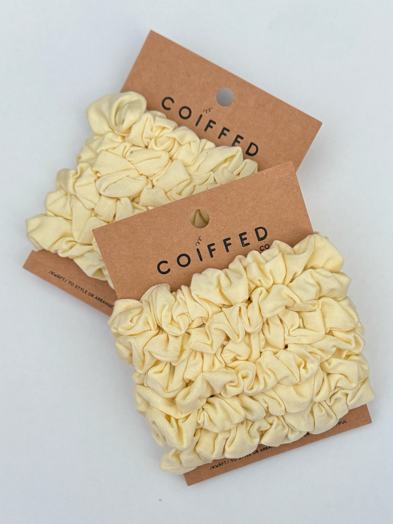 Our super soft bamboo scrunchies are designed to lessen frizz, creasing, tension and damage to hair. Packaged on card and in bag that is recyclable, compostable, and biodegradable. Our scrunchies are consciously created to be kind to the environment and gentle to your hair.
